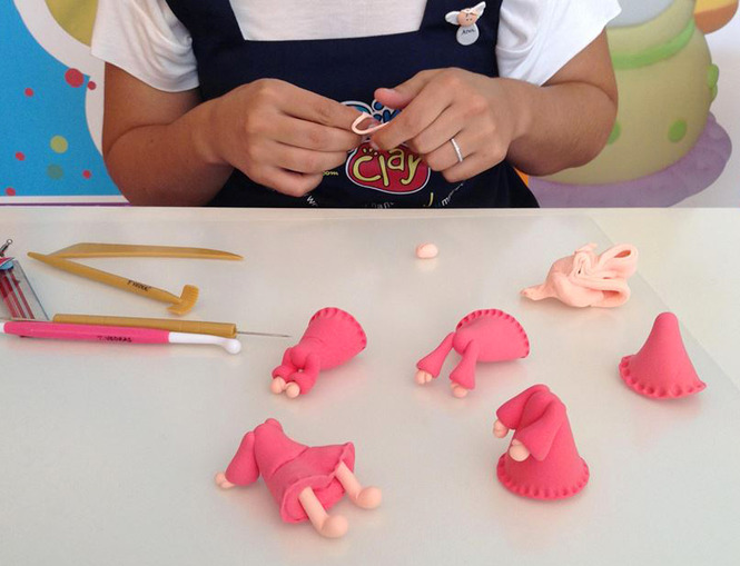Невимушений стан, в якому проходить майстер-клас по роботі з полімерною глиною, сприяє творчості. Спочатку проходить добірка глини, а після відповідних кольорів, далі розкочування глини і ліплення.